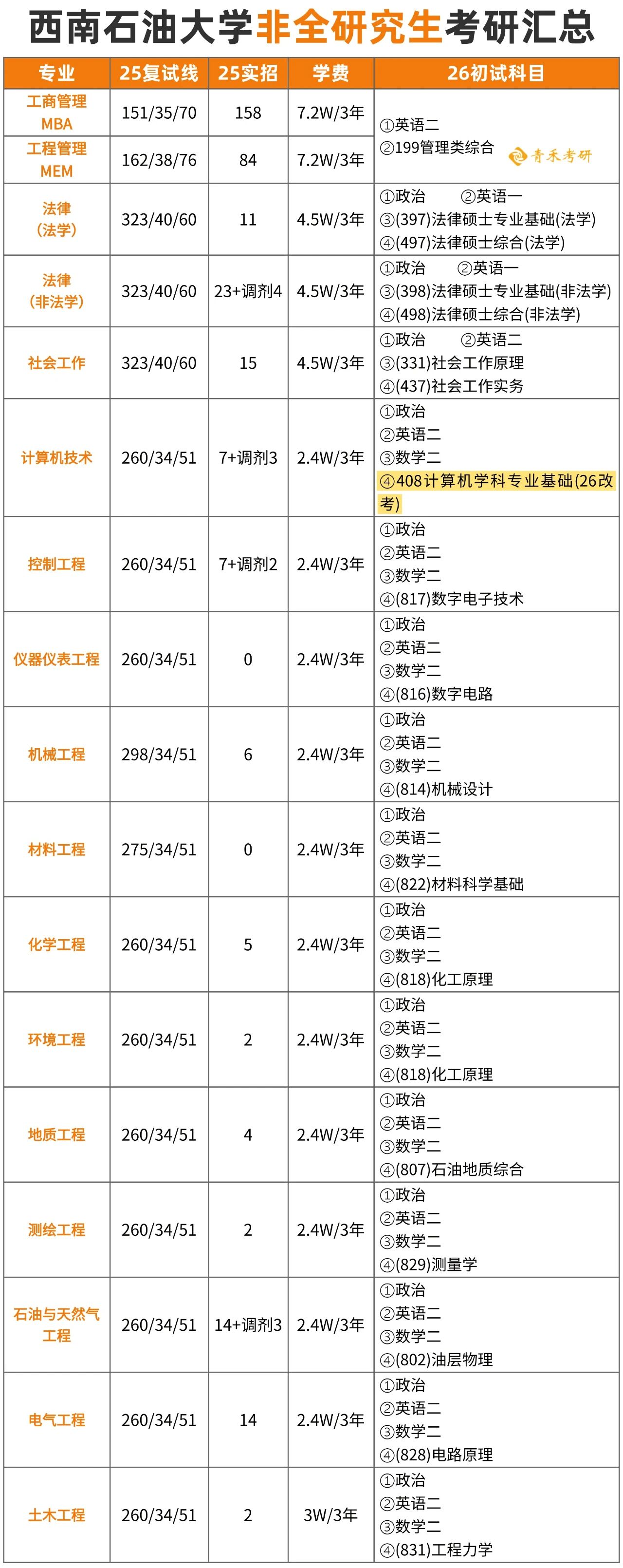 还需要注意的是西南石油的计算机科学专业,26考研专业课改为408了哦。
