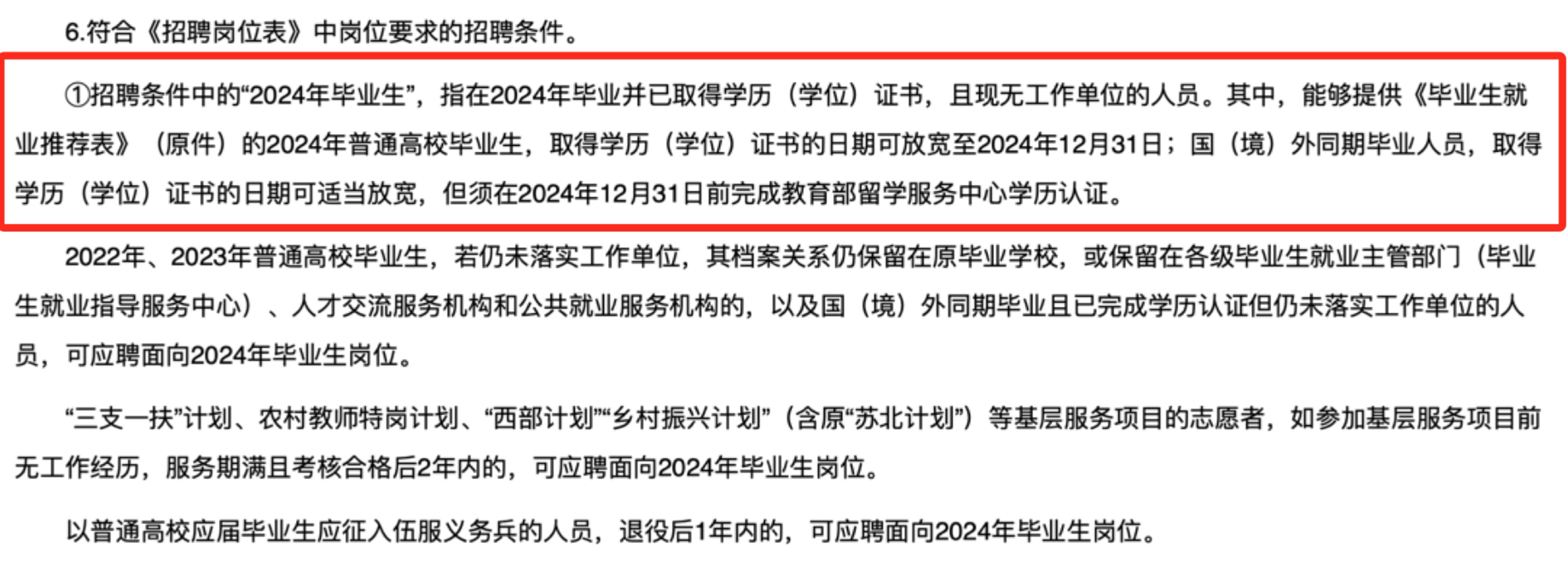 江苏省在招聘报告公告中,将“毕业生”字眼替换掉了“应届生”。同时也并无对学习形式(全日制或非全日制)作出要求,这也就意味着非全日制研究生在文件上符合“2024年毕业生”这一身份界定。