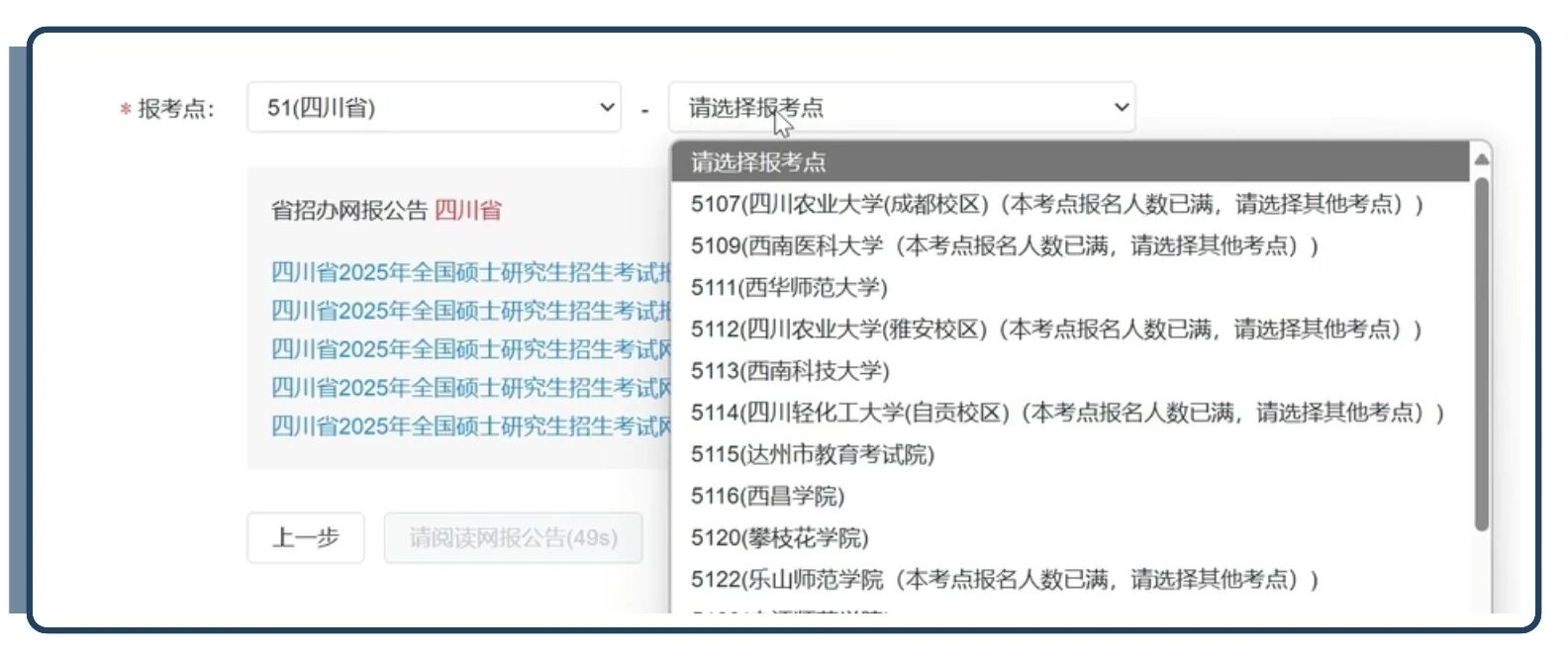 注意:四川报考点非常紧张,一定要尽快进入系统抢考点,往届生也能参加预报名。