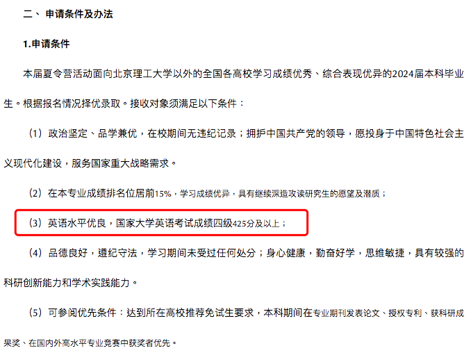 夏令营活动的报名通知中,对四六级有明确的分数要求,最低标准是过四级。