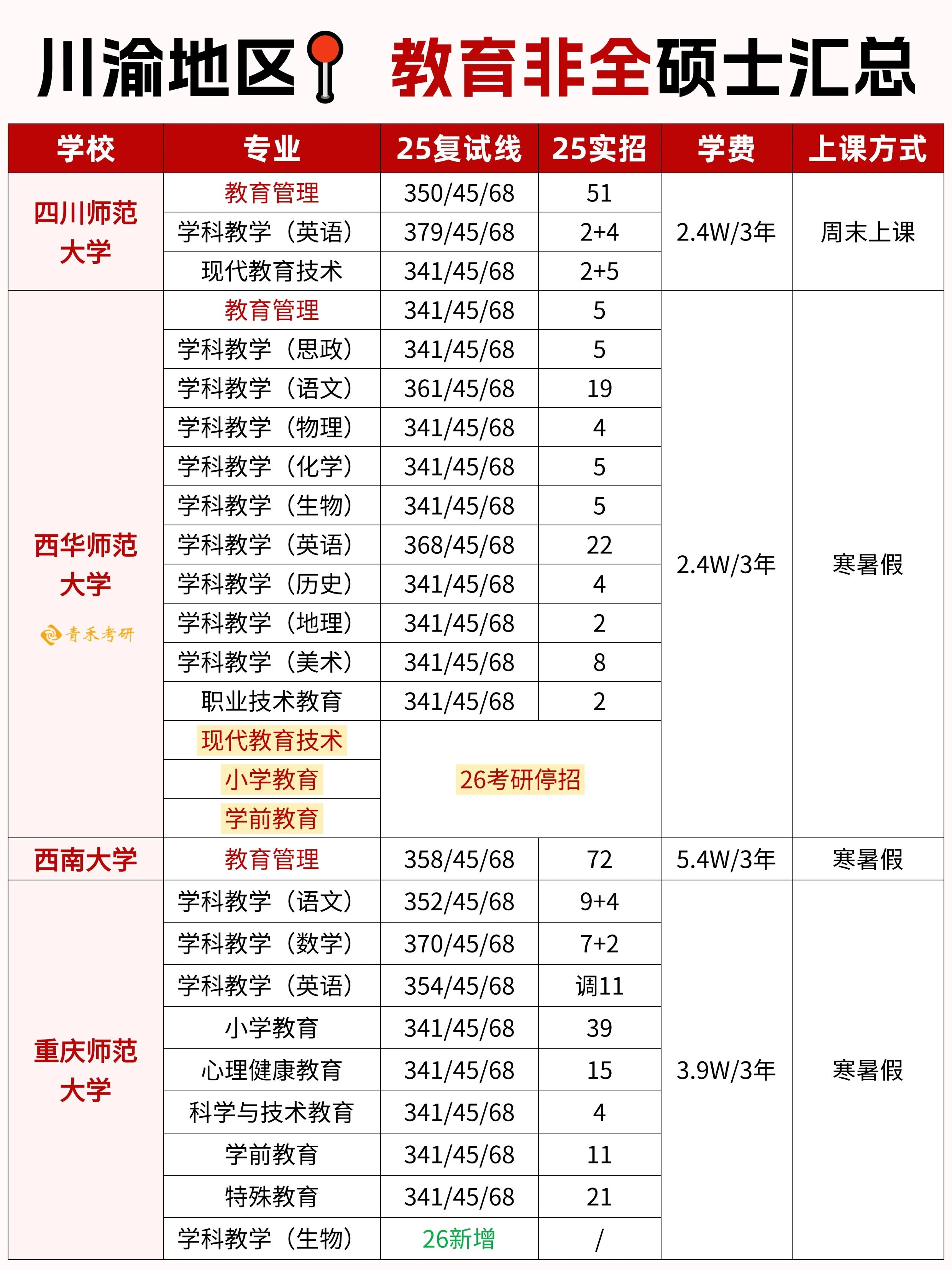 另外,西华师范大学全日制特殊教育专硕也停止招生了,目前川内有乐山师范学院以及四川师范大学招收。