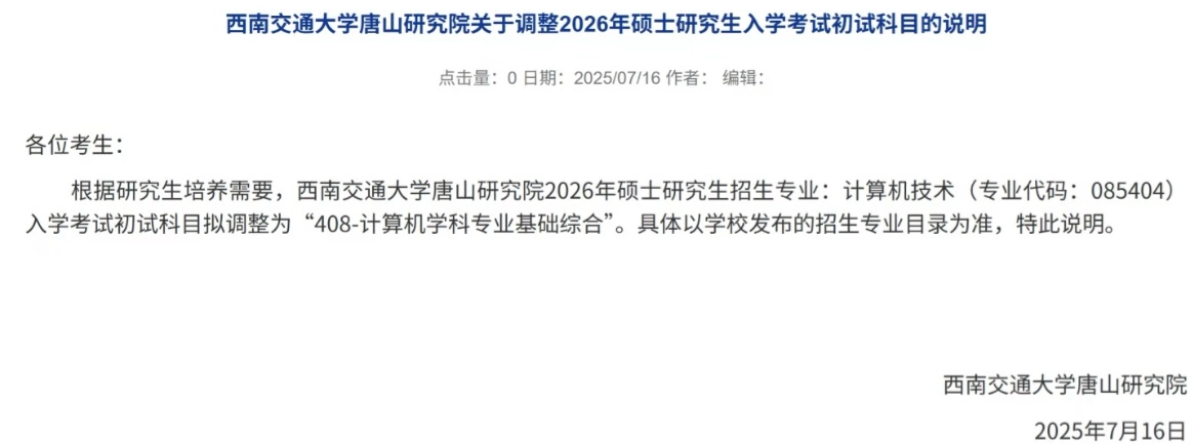 今天小禾给大家整理一下26考研改考408的学校公告,有需要的同学可以点赞收藏一下哦~