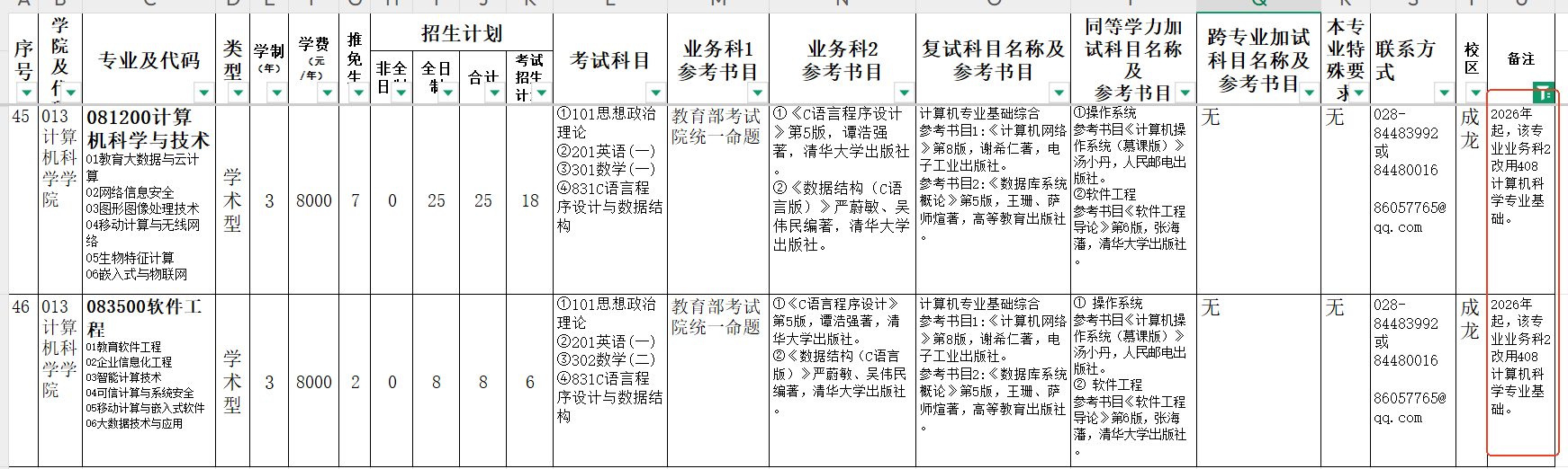 2025年四川师范大学专业目录里写到081200计算机科学与技术以及083500软件工程,26考研将改考408。