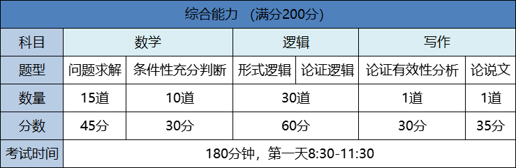 要求考生掌握对各种信息的理解、分析和综合,以及相关的判断、推理、论证等逻辑思维能力,不考察逻辑学的专业知识,其中试题内容涉及自然、人文和社会等各个领域,但不考察相关领域的专业知识。