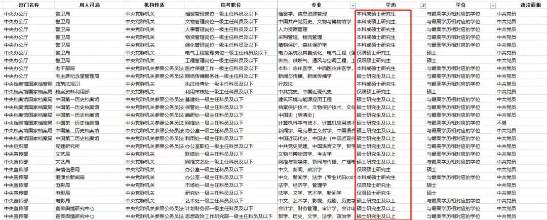国考中重要的党群机关和省考中很多的省直机关、市直部门对于学历的要求也都是研究生起步,这也是未来公务员招考的大趋势所在。