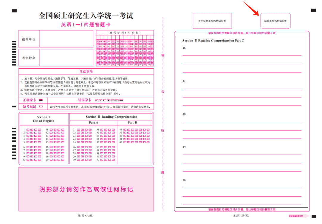 政治、英语一、英语二、管理类综合科目,有科目信息条码和考生信息条码,其他统考科目只有考生信息条码。