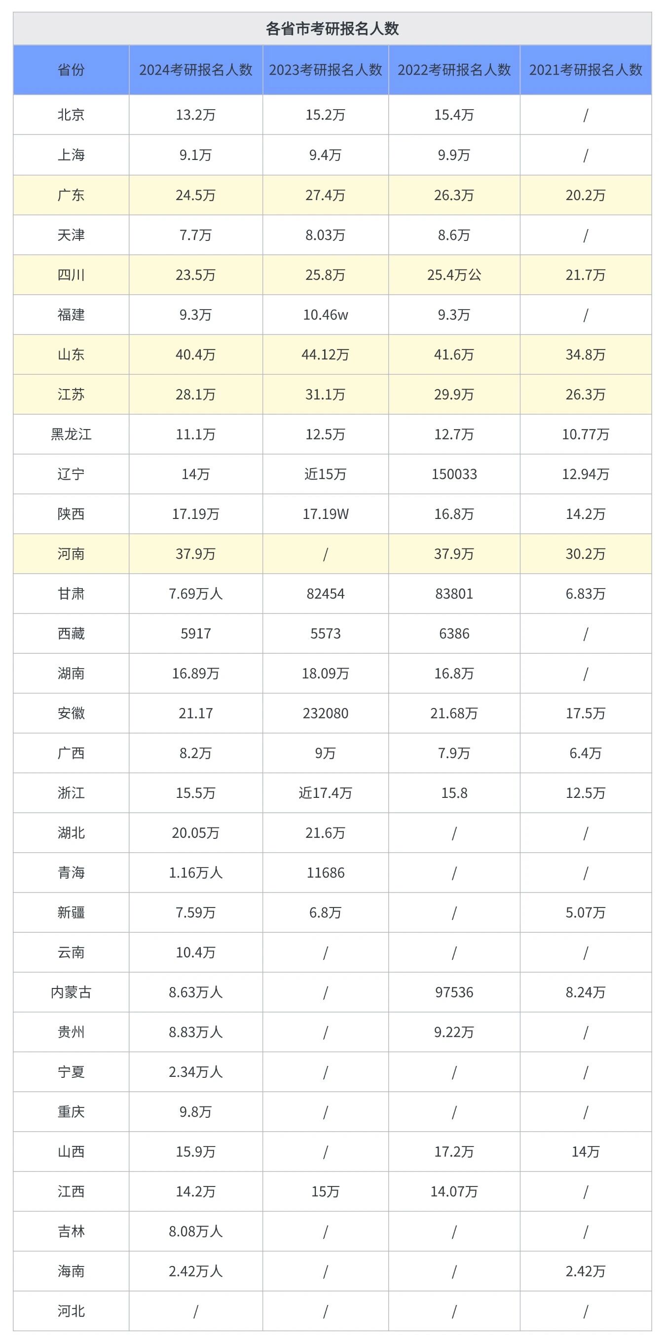北京作为众多名校所在地的首都,考研或许最卷?但从各省市公布24考研报名人数来看,前5名分别是山东、河南、江苏、广东、四川。
