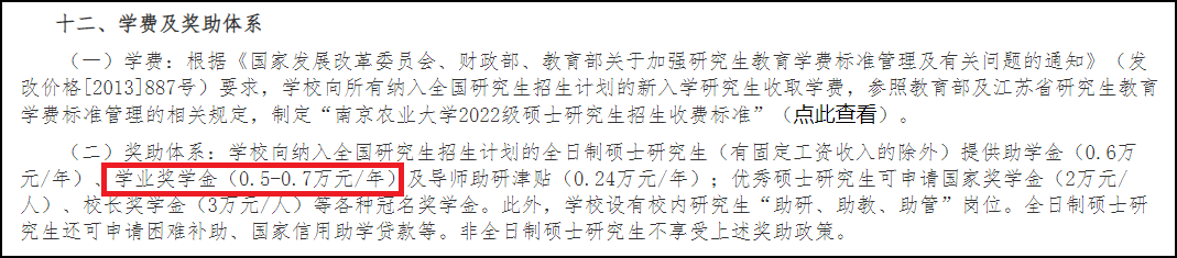 根据《南京农业大学2024年硕士研究生招生简章》,研究生学业奖学金为7000元、5000元,往年为14000元、8000元、6000元,奖学金下降幅度还是相当大的,几乎缩减了一半。