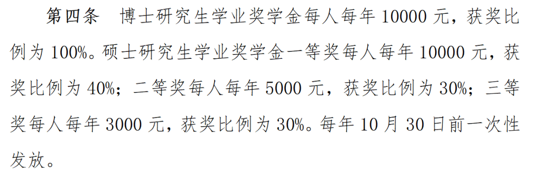 根据湖南大学23年9月发布的《湖南大学研究生学业奖学金管理办法》,硕士研究生学业奖学金有三档,分别为3000元、5000元、10000元(占比最高,为40%)。其中还规定,推免生第一学年的学业奖学金不低于二等,也就是最少也能拿到5000元!