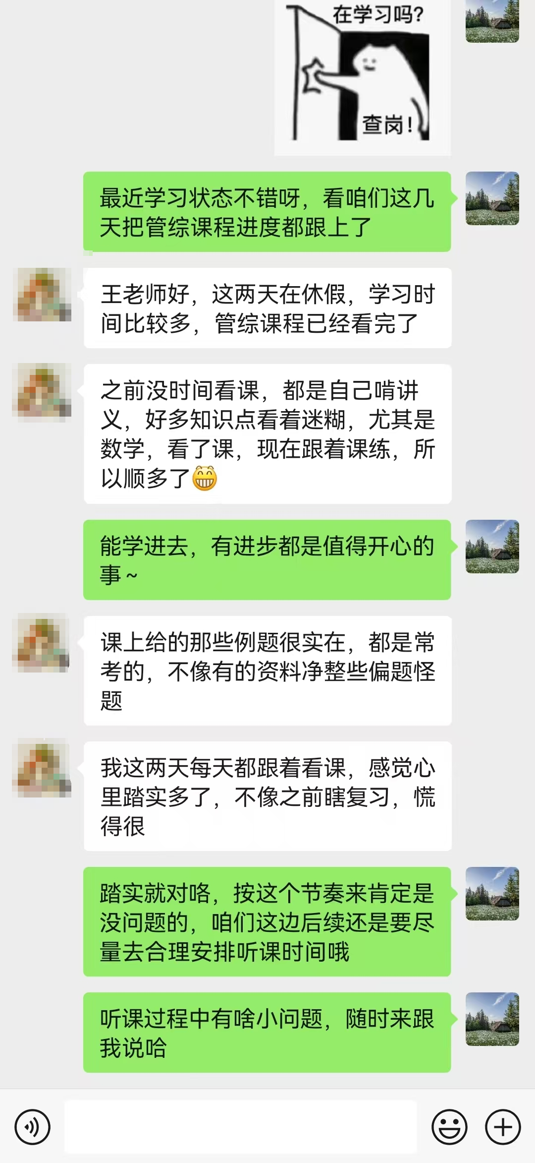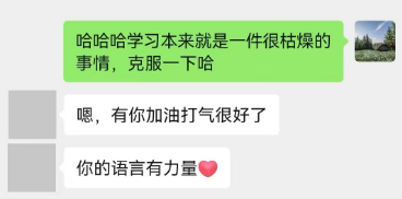 但是当我们有了班主任老师的在线鼓励,心理疏导,自己跟着老师按部就班的学习,同学们的焦虑感也在逐渐淡化。