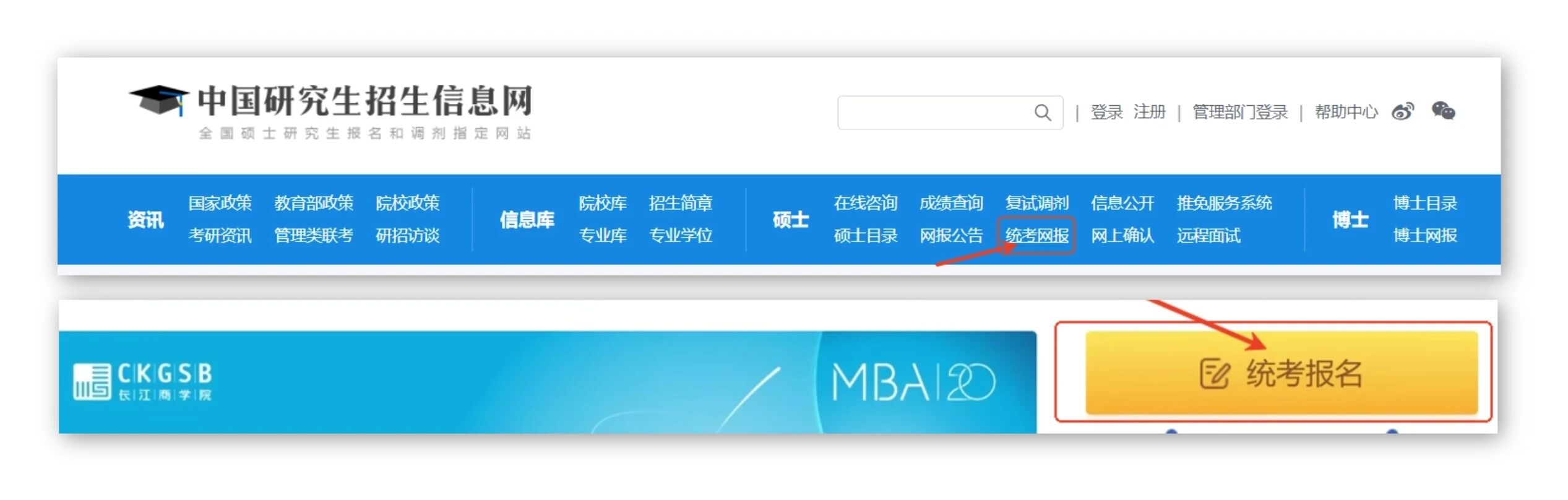 第一步:登录研招网点击:统考网报-统考报名-输入学信网账号密码登录即可