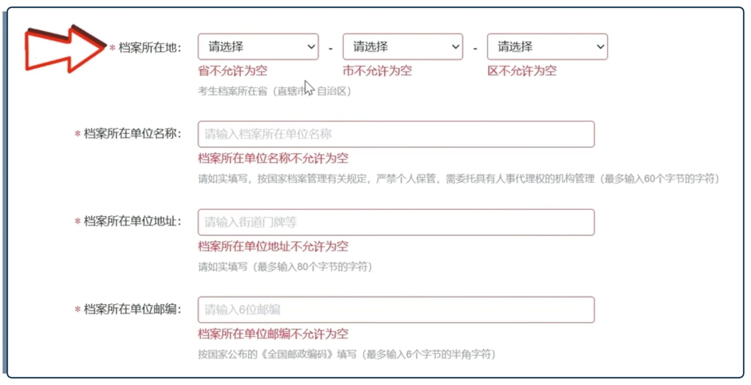 往届生/成人本科应届生:推荐大家在这个网站查询档案存放地【全国人力资源和社会保障政务服务平台】-登录之后搜索【档案存档情况查看】,这一步大家报名之前可以查询好