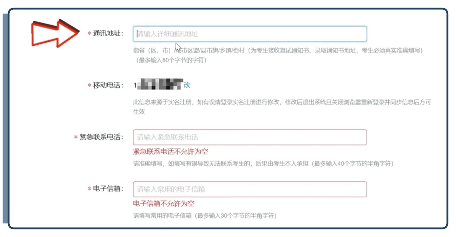 通讯地址:接收录取通知书的地址,应届生别填学校