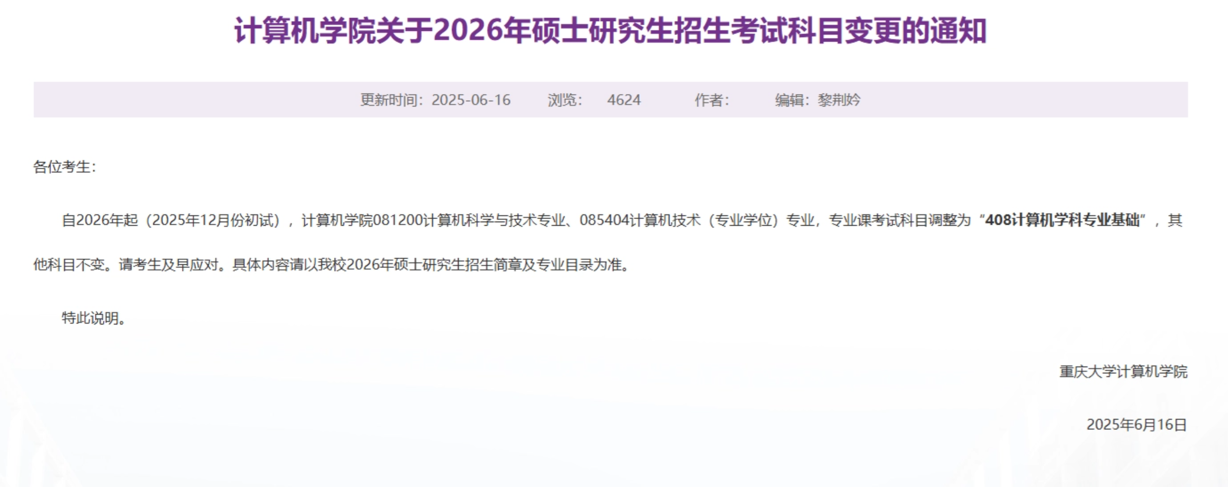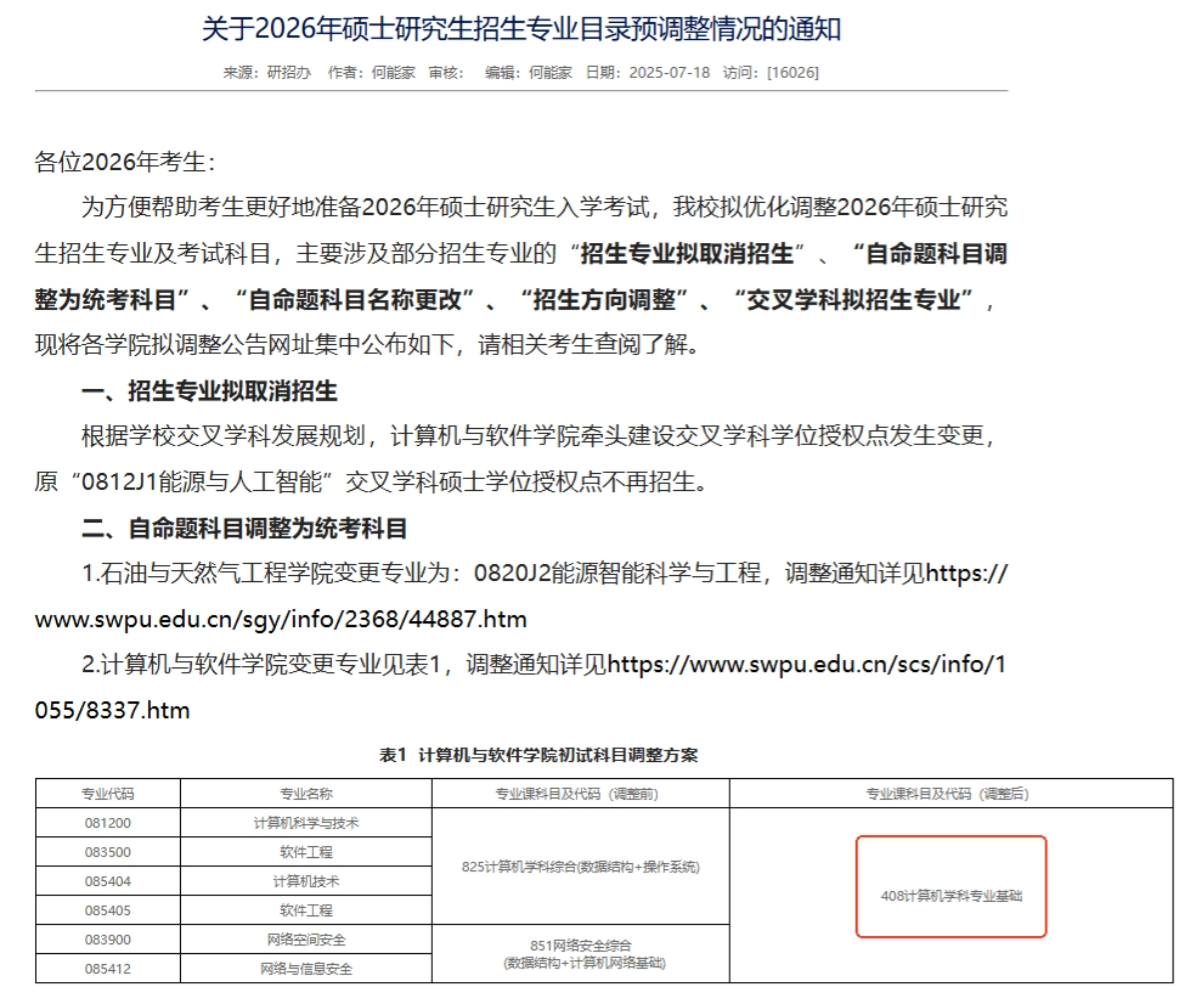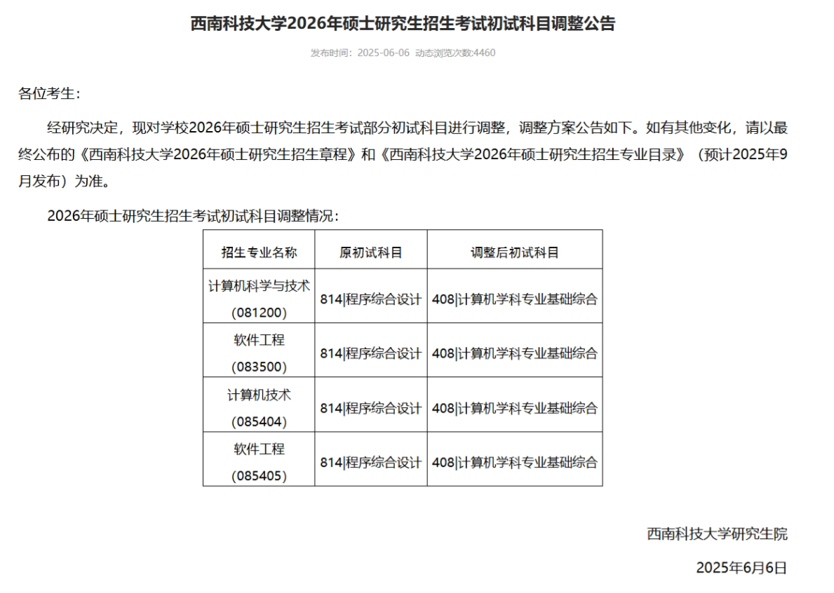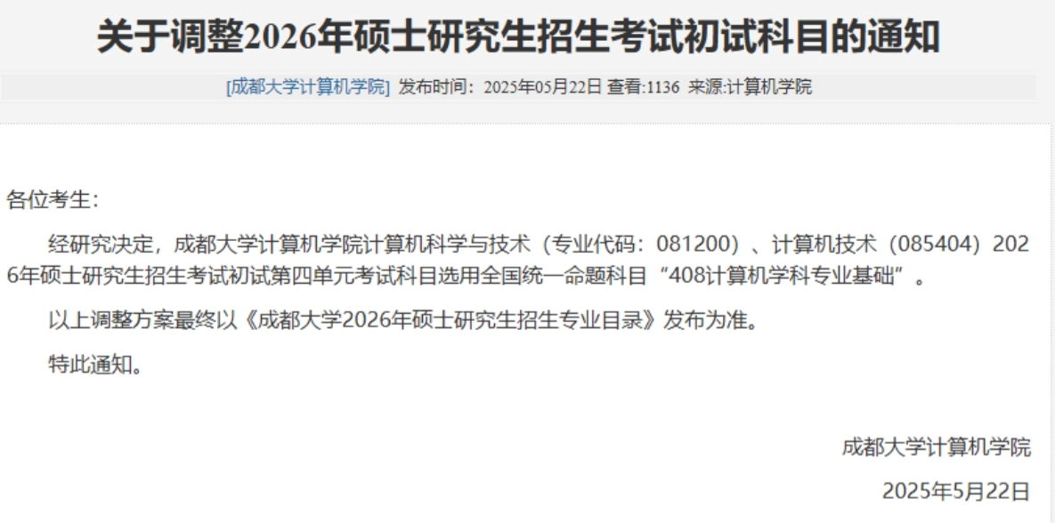今天小禾给大家整理一下26考研改考408的学校公告,有需要的同学可以点赞收藏一下哦~
