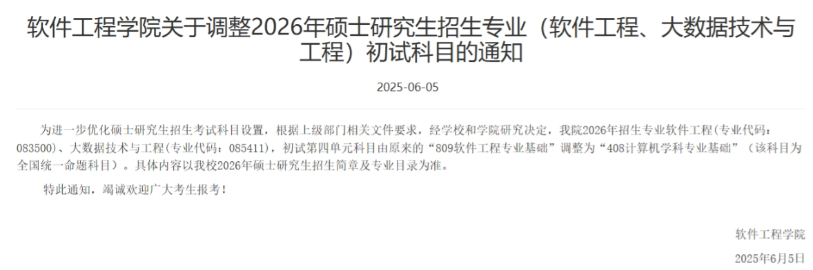 软件学院与计算机学院都改考408