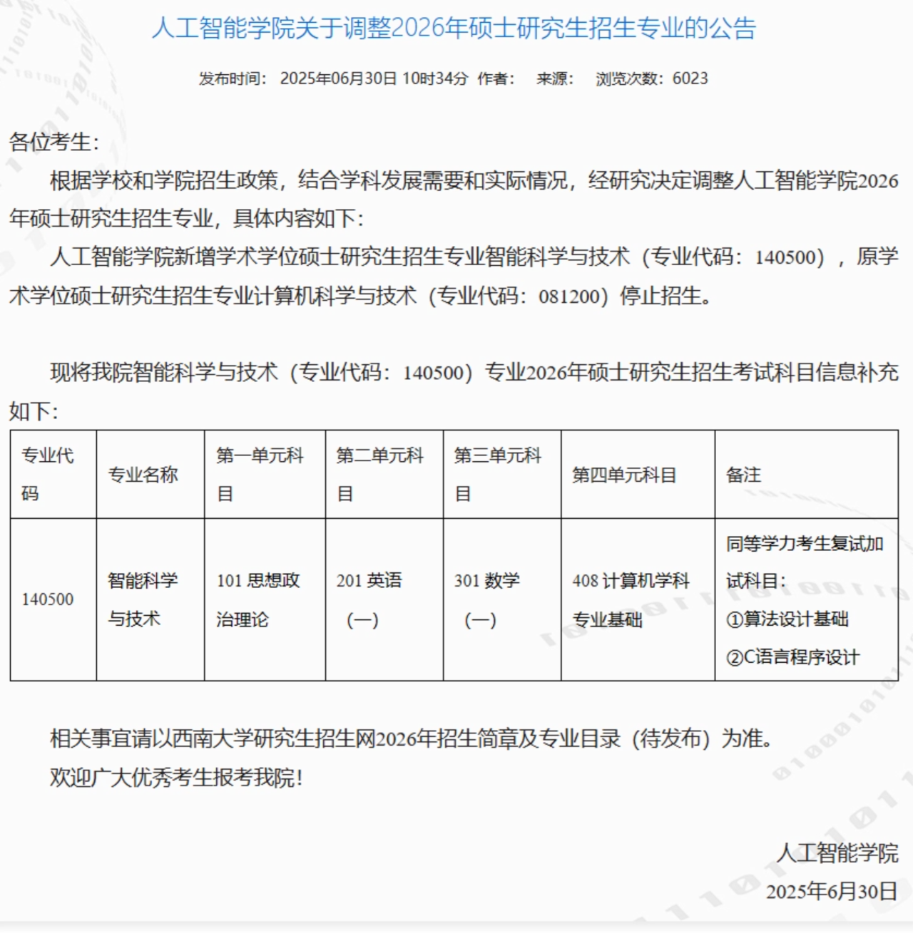 只有人工智能学院新增专业,140500智能科学与技术考408,其他学院暂时没有官宣改考408。