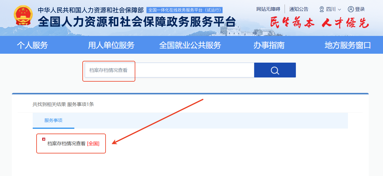 1️⃣打开档案查询网站:全国人力资源和社会保障政务服务平台