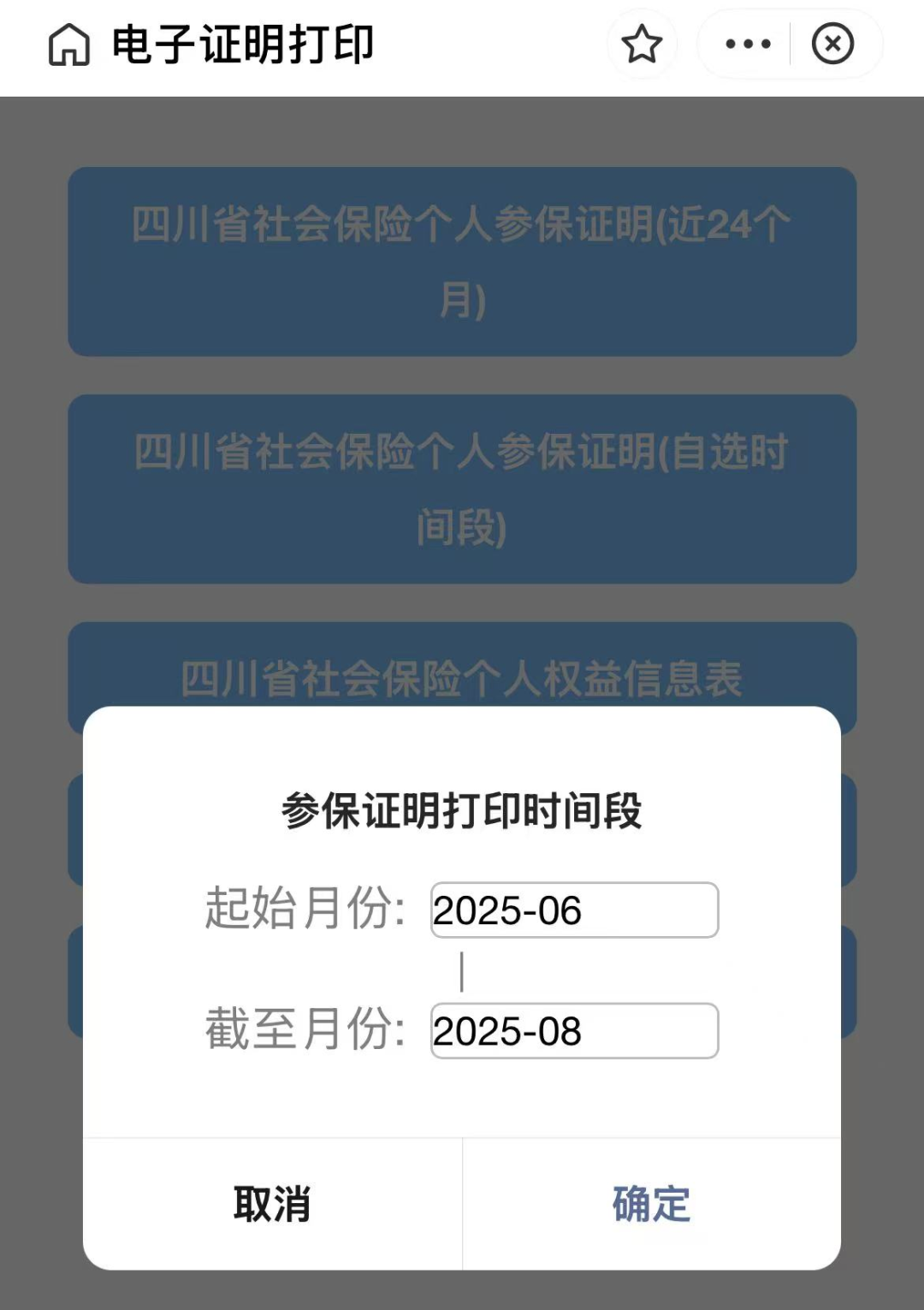 2️⃣选择:四川省社会保险个人参保证明(自选时间段)-选近三个月的