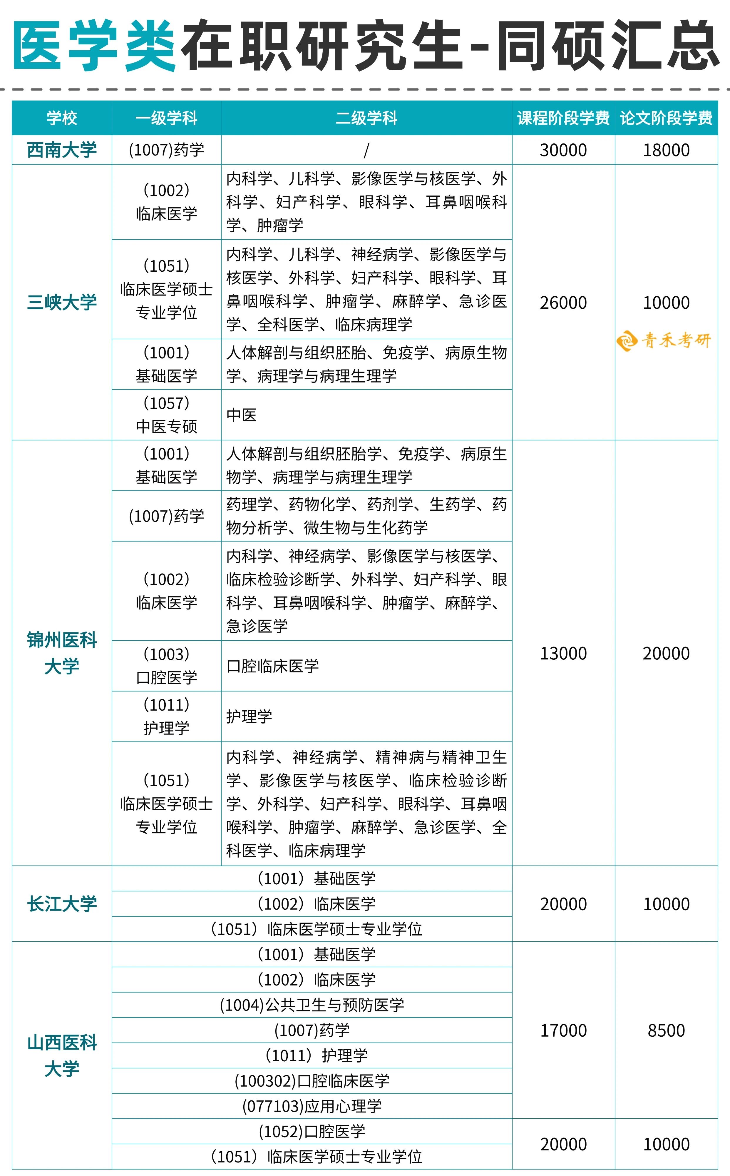 医学类同等学力申硕院校汇总!线上上课,三万拿证~